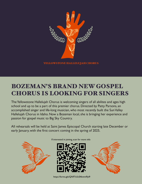 St. James is delighted to welcome the new Yellowstone Hallelujah Chorus! YHC will be rehearsing at St. James and is currently recruiting singers. To get involved, sign up here! Rehearsal information will be posted soon.