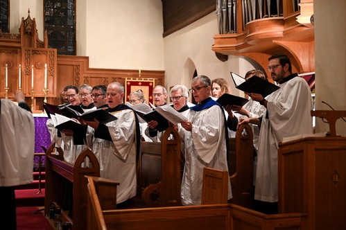 St. James' choir, led by our Minister of Music, Logan Henke, sings each week at our 10:15 am service. Our repertoire includes a mix of traditional hymns, spirituals, and anthems with a few surprises thrown in. We are a SATB choir and rehearse each week on Thursday nights at 6:15pm and gather to warm up at 9:30am on Sundays. We'd love to have you sing with us, even if you can't commit to being with us every week.